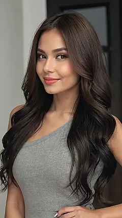This girl’s hair is like a chocolate waterfall – long, straight, and so shiny it could probably power a small city! Seriously, it’s the kind of hair that makes you want to run your fingers through it (don’t worry, she probably wouldn’t mind!). Imagine all the fun braid styles or sleek ponytails you could do with those luscious locks!