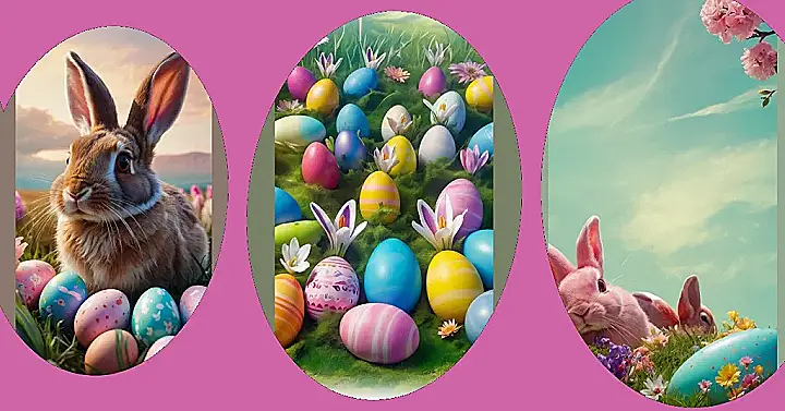 This bunny’s clearly living its best life, chilling in a field of pastel dreams. It’s like someone spilled a giant bag of Skittles, but instead of candy, it’s all beautifully decorated Easter eggs! Who needs a basket when you’ve got a whole meadow of amazing Easter aesthetic just waiting for you?