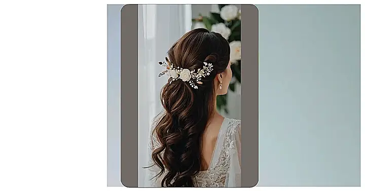 The best part? This “wedding hairstyles half up half down” style is super versatile. You can easily adjust the curls to match your hair texture, or even go for straight hair if that’s more your jam. And the clip? You can swap that out for flowers, a ribbon, or even nothing at all! It’s all about personal preference, so feel free to experiment and make this beautiful style your own. Plus, let’s be honest, who doesn’t love a good hair flip moment?