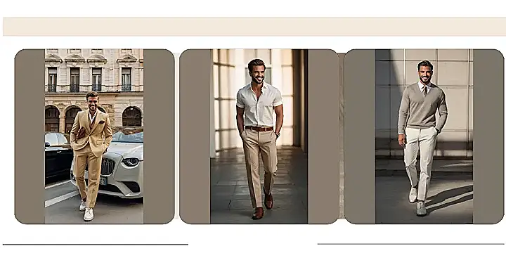 Alright, check out this guy! He’s rocking the “dad on vacation” vibe, but somehow manages to look super cool doing it. It’s like he raided your grandpa’s closet, threw on a black shirt, and accidentally stumbled into a photoshoot. Seriously though, the tan pants and dark shirt combo is a total classic, showing that sometimes the best style is just keeping it simple and clean.