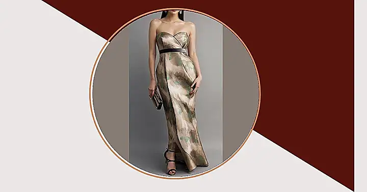 This dress is basically the definition of ‘elegant dresses classy’ goals! Seriously, picture yourself rocking this at prom or a fancy dinner party. It’s got that cool, sophisticated vibe with the strapless top and the long length, plus that interesting floral print makes it stand out. It’s like you’re saying, “Yeah, I look amazing, but I’m also super interesting.”