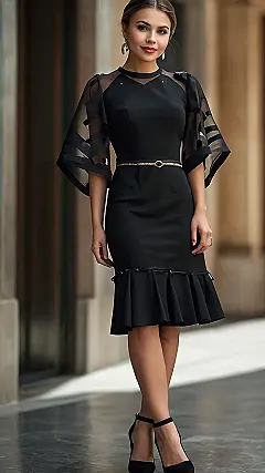 This dress is so elegant, it’s practically royalty! Picture yourself wearing this to a school dance or even just a fancy dinner out. The little details, like the see-through sleeves and the sparkly belt, totally take it to the next level. Plus, it’s black, which means it goes with absolutely everything. Talk about a win-win!