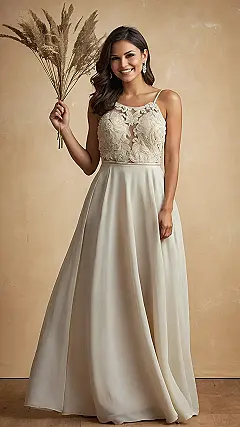 This dress is like a dream—a creamy, dreamy cloud you can wear! It’s totally chic and maxi, just like the keyword says. Imagine twirling around in this gorgeous gown, feeling like a boho princess with your pampas grass bouquet (because who needs a boring old rose bouquet, am I right?). It’s the perfect outfit for a fancy garden party or even just hanging out with your friends and feeling incredibly fabulous. Plus, you’d totally steal the show!