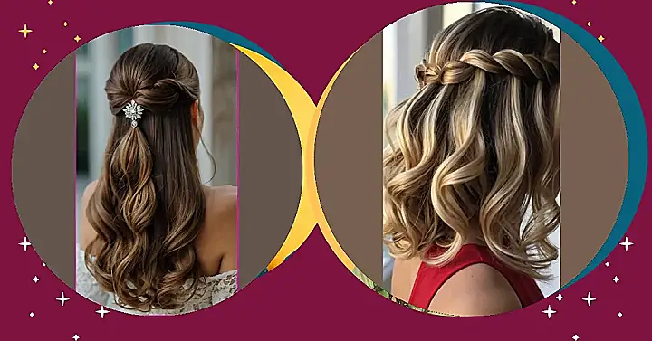 Forget about struggling with a ton of bobby pins and hoping your updo doesn’t collapse on the dance floor. This half-up, half-down style is super chic and pretty easy to achieve. The braid and the sparkly hair clip? Total game-changers! They add just the right amount of glam, so you can focus on what really matters: slaying on the dance floor and making memories with your besties.