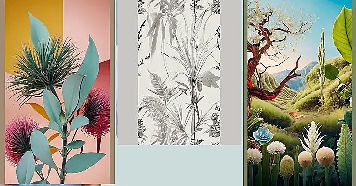 Imagine if plants decided to join a paint party and went totally abstract – that’s kinda what this botanical wallpaper is giving! It’s like someone took a super cool, super modern painting and slapped some funky-shaped leaves and spiky flowers all over it. Who knew being green could be so colorful and totally rad?