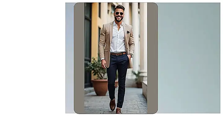 And don’t even get me started on the details! Those sunglasses scream “cool person approaching,” and that little pocket square adds a touch that says, “Yeah, I considered my look today.” It’s these small things that bring the whole ‘latest men’s fashion’ vibe together. Copying this look might just be the secret ingredient to feeling confident, whether you’re walking into school or just trying to impress your reflection. Plus, knowing you look this good might even make you slightly less nervous about asking for extra fries or presenting in class. It’s proof that putting a little effort in goes a long way!