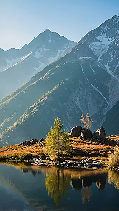 Taking photos in the mountains is basically nature’s obstacle course mixed with an art project. You’re trying to capture epic views like this one, with the big rocky giants and tiny trees, while also making sure you don’t slide down a slope or get attacked by super-friendly bugs. It takes patience, good hiking boots, and maybe a few snack breaks (definitely a few snack breaks). But hey, when you nail a shot where everything looks this awesome, including that perfect reflection, you forget all about the uphill struggle!