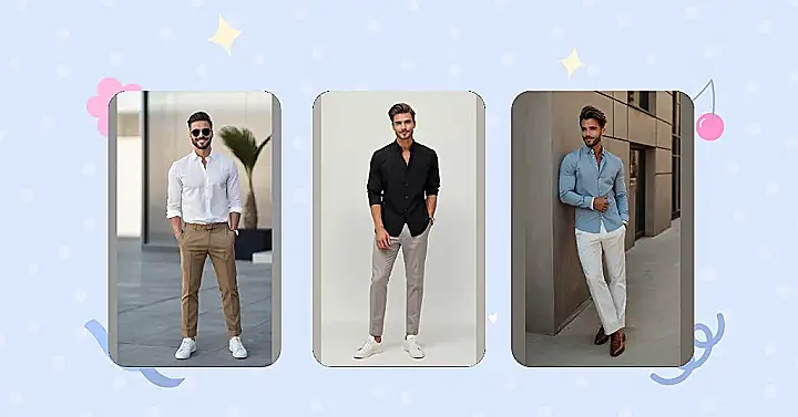 Want to look like you just stepped out of a magazine? Check out this guy! He’s rocking the “effortlessly cool” look with a light blue shirt and crisp white pants. It’s like he’s saying, “Yeah, I woke up like this,” even though we all know it probably took him a solid hour in front of the mirror (totally worth it, though!). If you are looking for mens handsome outfits, this is it.