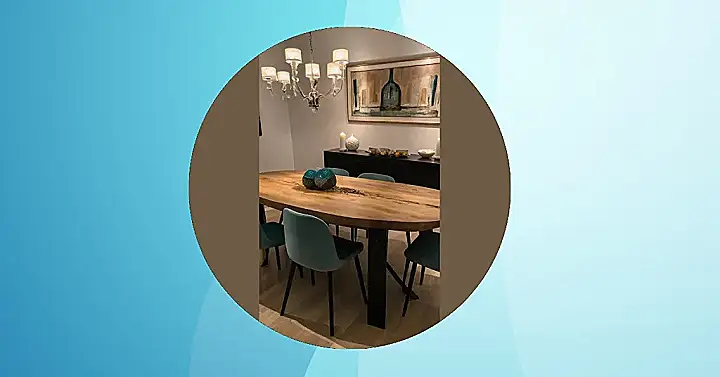 Now, let’s talk about that chandelier – it’s like a fancy birthday cake candle holder, but for the whole room! It adds a touch of “look at me, I’m sophisticated!” without being stuffy. Plus, the artwork in the back adds some color and completes the space to create the perfect balance. It’s proof that dining room decor can be both elegant and super welcoming at the same time.