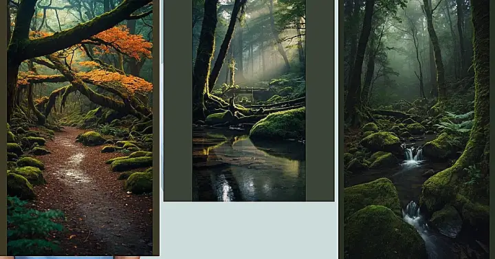 This picture looks like it’s straight out of a fairytale! Imagine a mossy, mysterious forest with tall trees that almost touch the sky. The path ahead is covered in soft green ferns, and a hidden wooden bridge peeked out from the mist. It looks like a place where you might bump into a friendly gnome or a mischievous fairy!