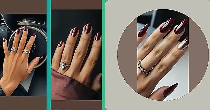 These gel nails are absolutely stunning! That deep red color is so elegant and sophisticated, and the sparkly accent nail adds a touch of fun and personality. It looks like these nails are ready to take on anything, from a fancy dinner to a night out with friends.