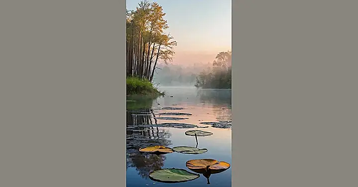 This picture looks like the kind of place you’d find a super chill frog just vibing on a lily pad. I bet he’s listening to some lo-fi beats and enjoying the real scenery. The fog adds a nice touch of mystery, like maybe there’s a secret lake monster lurking just out of sight. Just don’t tell him I sent you, he hates paparazzi.