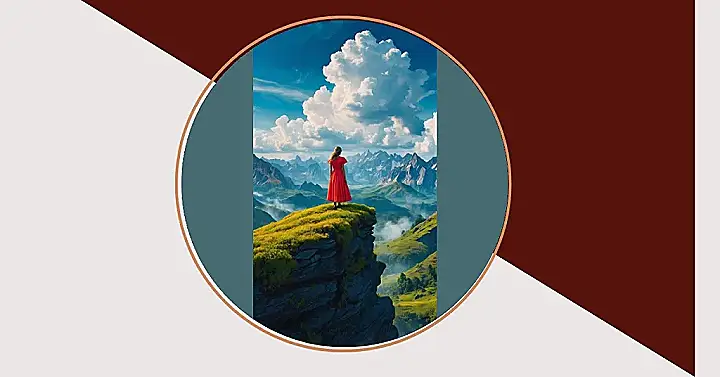 This picture is basically what happens when someone finds the ‘epic’ setting on the universe and just leaves it on. You’ve got this person standing on a cliff looking like they just stepped out of a fantasy movie, complete with a dramatic red dress that probably gets zero snags on mountain rocks. The mountains are doing their whole majestic, misty thing, and the clouds overhead look like someone piled up giant scoops of ice cream. It’s the kind of view that makes you feel tiny but also kinda like you could conquer the world, or at least ace your next pop quiz.