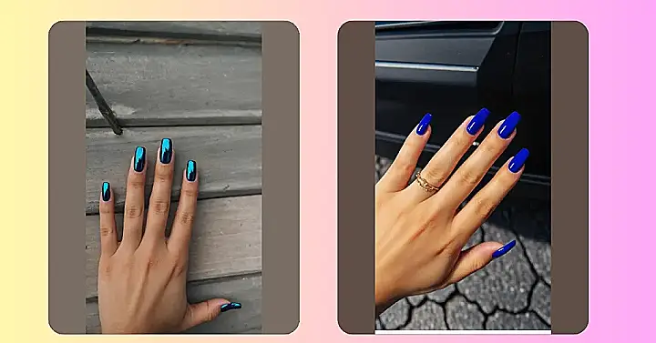 These nails are so blue, they’re practically screaming “ocean vibes” from the rooftop! Just imagine sitting by the beach, sipping on a fruity drink, and feeling the warm sand between your toes. Those long, blue nails would look amazing against that backdrop! You know, like a mermaid who’s had a little too much sun.