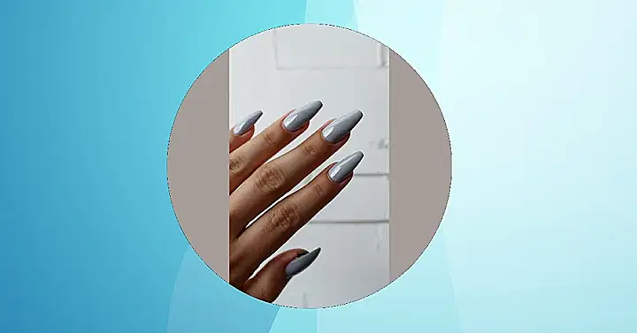 These nails are a total vibe! They’re long and sleek, like a supermodel’s runway walk. The light grey color is so chic, it’s almost like a cloudy sky, but way cooler. It’s not too bright or flashy, which is perfect for those who like a more subtle look. Plus, they’re probably way easier to maintain than those super long, pointy nails that everyone keeps breaking!