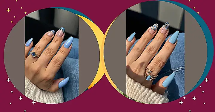 Putting on a set of blue nails this awesome is basically a superpower. Your hands suddenly demand attention, and people will totally ask where you got them. You could make up a wild tale, like you found them at the bottom of the ocean or won them in a nail art competition judged by talking squirrels. Whether you’re just flexing or trying to make your homework look less terrible by comparison, these nails are definitely doing something right.