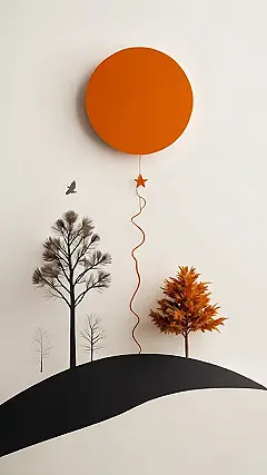 Imagine your phone is a super zen garden, but instead of tiny rakes, it’s this wallpaper! It’s so simple, it’s almost ridiculous. You’ve got some trees chilling on a hill, a bird doing its bird thing, and a giant orange balloon… thing? Maybe it’s the sun on a really, really good day. Either way, it’s way less cluttered than your locker, and probably less drama too.