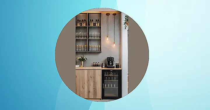 This isn’t just about coffee; it’s a total vibe. Look at those shelves – perfect for showing off your fancy mugs or those little syrup bottles that make everything taste amazing. And that little glass-front fridge? It’s basically bragging rights for chilling your iced coffee ingredients or just looking super professional. You could become the official barista of your house, mastering lattes and impressing everyone. Plus, it gives you a cool place to hang out that isn’t just your bedroom floor.