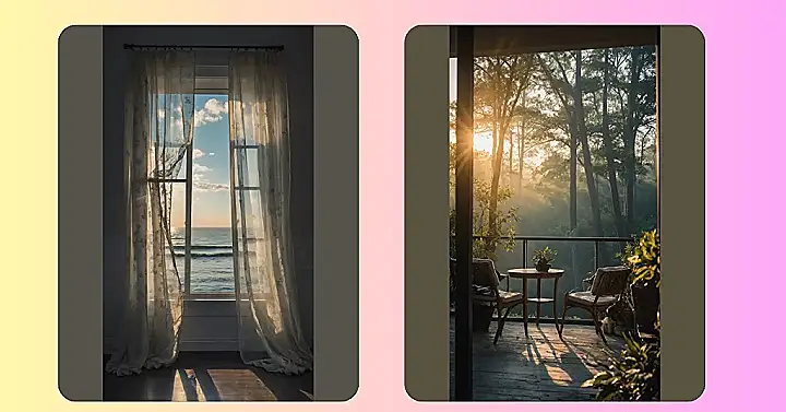 Check out those curtains! They’re having their own dramatic moment, catching the sunlight like they’re about to drop some major life advice about how to have a smooth morning. The sunbeam on the floor looks super inviting, practically begging you to forget about brushing your teeth and just stare at the pretty water instead. If mornings usually feel like a race against time, this peaceful scene is definitely the universe’s way of saying, “Hey, slow down, the ocean isn’t going anywhere.” Pity school usually is.