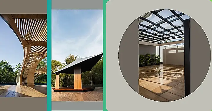 Think of this canopy design as the ultimate upgrade for your outdoor hangouts. It’s not just about blocking the sun; it’s about creating a vibe! The mix of wood, glass, and those chic curtains totally screams “I’m sophisticated but also love a good nap in the shade.” And let’s be real, who wouldn’t want to impress their friends with a canopy that’s more runway-ready than rainy-day-ready?