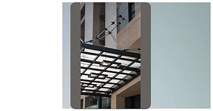 Check out this super cool canopy! It looks like a giant, fancy tic-tac-toe board protecting you from the elements. This canopy design is all about making an entrance, and it seems like the builders were playing a real-life game of Tetris to come up with this masterpiece. It’s not just about keeping you dry; it’s about looking awesome while doing it.
