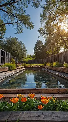 This picture is basically a happiness explosion captured by a camera! It’s like someone bottled up all the good feelings of a summer vacation and turned them into a photograph. Imagine ditching all your homework and just chilling by this pool with a good book and maybe a floaty shaped like a giant flamingo. I can already hear the birds chirping and smell the sunscreen!