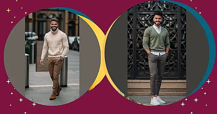 Want to look like you just stepped out of a magazine, but without trying too hard? This look is perfect for that! It’s like saying, “Hey, I’m stylish, but also super chill and ready to grab some pizza.” Ditch the sweatpants (sometimes!), and try some cool chinos or jeans, a comfy tee or sweater, and a jacket that screams “I’m awesome,” all while keeping it super comfy.
