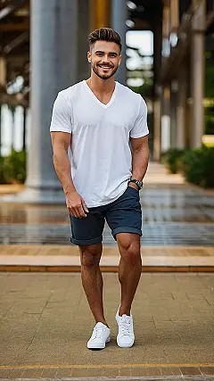 Want to look cool without trying too hard this weekend? Think simple. A plain white tee, some chill shorts, and clean white sneakers is basically the ultimate weekend uniform. It’s like saying, “Yeah, I look good, but I’m also ready for anything,” whether that’s chilling with friends, going for a walk, or just binge-watching your favorite show.