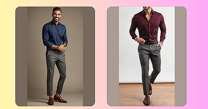 Looking sharp like the guy in this picture isn’t just for flexing at fancy events, though you totally could! Rocking a cool-colored shirt and smart pants like these is basically saying, “Yeah, I cleaned up nice.” It might feel a bit different from your usual everyday threads, maybe even a little weird, but sometimes dressing up is just part of the game – like putting on your best gear for a big match or a final boss fight, but for real life.