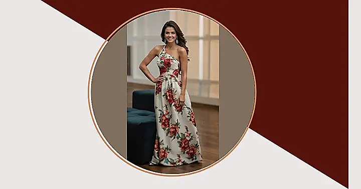 This dress is like a garden party exploded all over a white canvas! It’s got a super classy vibe, but with enough flowers to make you feel like you’re walking around in a field. The one-shoulder style gives it a modern twist, and it’s the perfect dress for a special occasion where you want to look amazing without going overboard. It’s like the dress version of that friend who’s always stylish, but also knows how to have a good time.