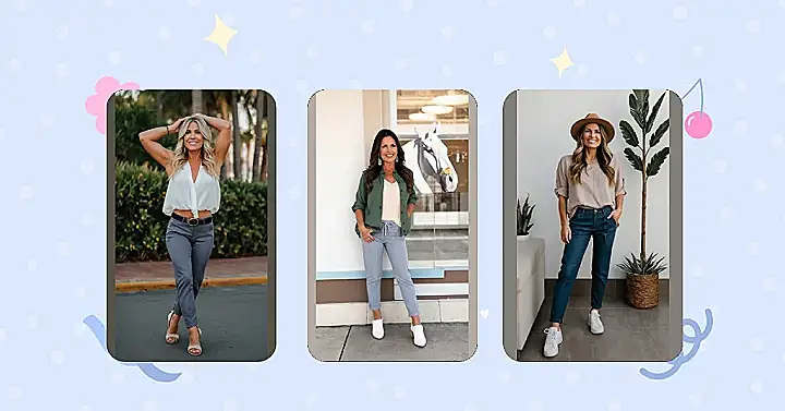 These aren’t your grandma’s mom jeans! The lady in the picture is rocking what we can call “causal mom pants”, which are basically comfy jeans you can wear to pretty much anything. Think of it as the jeans version of athleisure – perfect for running errands, chilling at home, or even a casual hang with friends. Add a cute top, and you are ready to go.