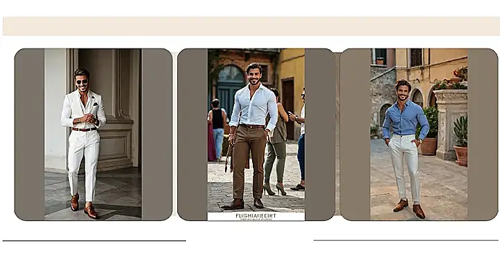 The key to this Italian fashion vibe is the details. Notice how the pants are perfectly tailored and the pocket square is subtly adding some pizzazz? This isn’t just throwing on any old clothes; it’s a carefully planned operation of looking effortlessly cool. If you pull this off, you might even get away with ordering pizza with pineapple on it… maybe.
