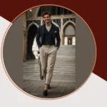 This guy looks like he’s about to star in a movie about a super stylish detective solving crimes in Rome. The dark jacket and light pants combo is a total classic, like something your grandpa might have worn in his younger days… if your grandpa was an Italian movie star! It’s simple, it’s clean, and it definitely screams, “I know what I’m doing when it comes to looking good.”