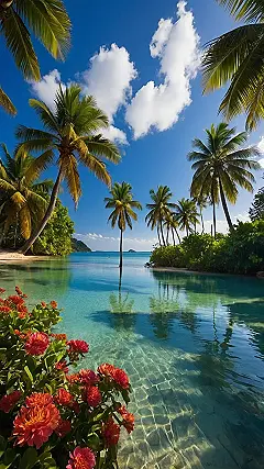 Picture this: you’re stressed about that huge history test, and suddenly *poof*, you’re here! It’s like the photo magically teleported you to the ultimate chill zone. The water is so clear, you could probably count every grain of sand, and the palm trees are practically whispering, “Dude, relax.” Even the flowers look like they’re meditating. Forget textbooks; all you need here is a hammock and a smoothie!