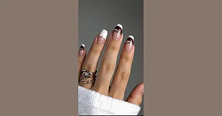 These nails are seriously next-level! The maroon color is so rich, it’s like something a queen would wear while sipping fancy tea. And that gold glitter nail? It’s like a party for your fingers! If you’re feeling brave and want to try some seriously cool nail art designs, this is definitely one to screenshot and show your nail artist.