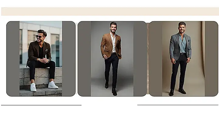 So, you want to look like you just stepped out of a magazine, huh? This dude’s got the secret sauce: a blazer that screams “I’m important, but also down to grab pizza,” paired with those super comfy-looking grey pants. And those white sneakers? It’s like saying, “Yeah, I could wear dress shoes, but I choose comfort and style.” It is the look that says “I’m ready for a board meeting but could totally crush it at the skatepark too.”