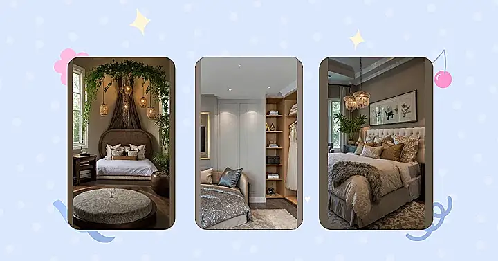 And the decor in this place? It’s seriously next level. We’re talking not one, not two, but layers of plush pillows piled high, practically daring you to try and use them all. The whole vibe is super chill and fancy without being stuffy, thanks to those cool panels and soft curtains. Even that plant in the corner looks like it’s living its best life! It’s proof that master bedrooms decor isn’t just about a place to crash, it’s about creating a total mood – one that screams “Do Not Disturb, I’m Hibernating in Style.”
