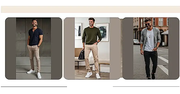 First things first, check out this guy! He’s totally rocking the “effortlessly cool” look. It’s all about keeping it simple but stylish. Think: classic t-shirt, pants that aren’t jeans but aren’t too fancy, and sneakers that scream “I’m ready for anything.” It’s the kind of outfit that says, “Hey, I woke up like this,” even if you spent, like, ten minutes deciding which shirt to wear.