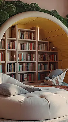 Seriously, who wouldn’t want this reading spot? The shelves are practically begging for some awesome books, and the plants add a chill vibe. It’s like a little escape pod for your brain. Just don’t get too comfortable, or you might end up accidentally napping and missing that history assignment. Whoops!