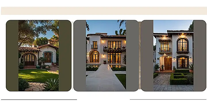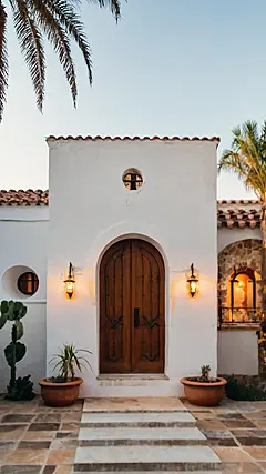 This Spanish-style house is so chill, it’s practically taking a siesta! With its bright white walls, terracotta roof tiles that look like sun-baked cookies, and arched doorways, you’d swear you stepped into a movie set. The cacti standing guard by the door probably wouldn’t let just anyone in, though; they’re the bouncers of the plant world, making sure only cool guests (like you!) get to enjoy the amazing Spanish vibes.