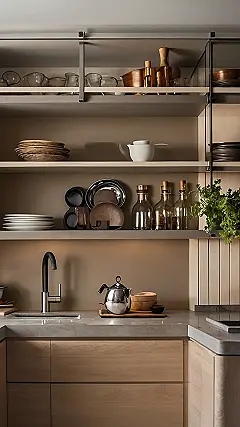 Seriously, though, look at those shelves! They’re like a carefully curated art exhibit, but instead of paintings, it’s just plates and bowls. And that sleek teapot? It’s definitely judging my old, dented kettle right now. I wonder if I can convince my parents to remodel…for purely educational reasons, of course.