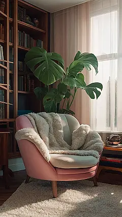 This chair looks like it was personally designed to hug you while you get lost in a good book. I mean, seriously, look at that fluffy blanket – it practically screams, “Come sit down and ignore your responsibilities!” Add in the bookshelf that’s just begging to be explored and you have all the ingredients for the perfect escape from reality. Homework can wait, right?