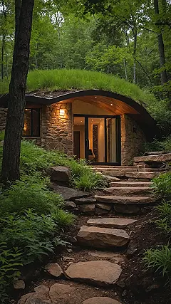 Whoa, check out this place! It looks like a super cool secret hideout built right into the hill, doesn’t it? These are called earth-sheltered homes, which basically means the ground is giving the house a big, cozy hug. Unlike a mole’s tunnel (no offense to moles!), this place has giant windows so you can actually see the outside world, especially all those cool trees like in the picture. It’s like having a house that decided to become best friends with the landscape and is maybe just a little shy, tucking itself in.