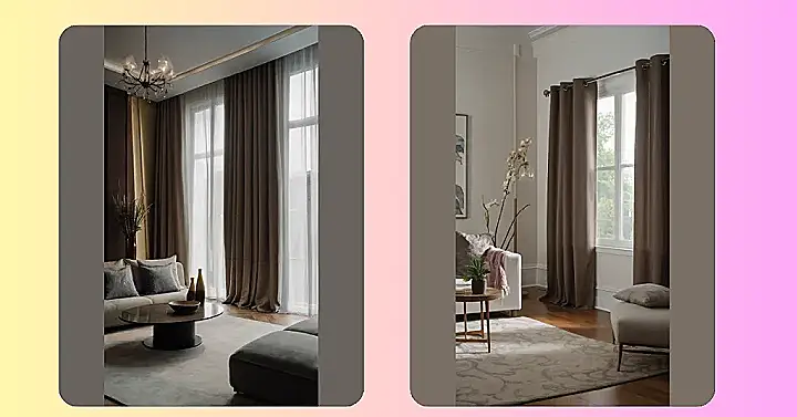 If you’re looking to make your own living room feel fancy and inviting, some curtains like these would be perfect! Just imagine the cozy vibes on a rainy day, with the curtains drawn and a good book in hand. You could even add some comfy furniture and a cute little plant like the one in the picture. It’s a recipe for a perfect hangout spot!