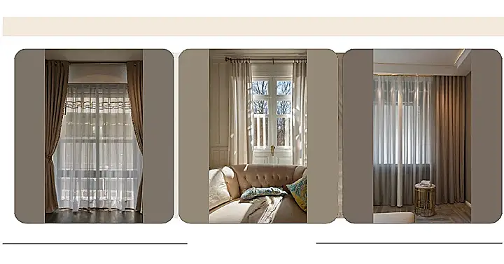 These curtains are like the ultimate wingman for your living room. They’re all, “Hey sunlight, yeah, you’re cool, but let’s keep things chill and mysterious in here.” Think of them as the bouncer at the hottest house party, deciding who gets the VIP treatment of full-on brightness and who needs to take a breather in the shade. Plus, those beige outer curtains look ready to start a spontaneous dramatic monologue at any moment.