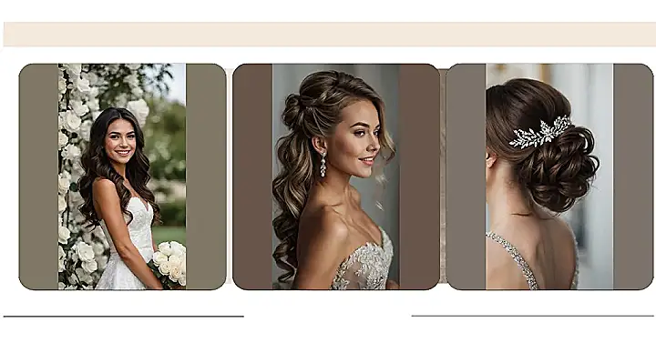 That perfect hairstyle, those earrings, and maybe even a little veil like the bride in the picture? It all comes together to make you feel like you’re stepping onto a runway, only way more important! Thinking about bridal hairstyles 2025 means figuring out if you want giant sparkly clips that could double as disco balls, flower crowns that scream ‘forest fairy’, or perhaps just a single perfect curl that behaves itself. Just remember, even if a rogue bobby pin tries to make a run for it, you’ll still look awesome because you’re celebrating YOU on the big day!