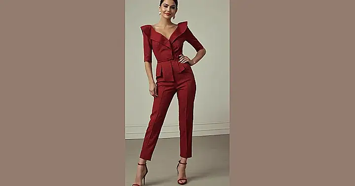 This woman is rocking a totally fierce red jumpsuit that makes her look like she could take on anything! The bold color, the sleek fit, and the dramatic collar make her look like a total boss. It’s like she’s saying, “Get out of my way, I’ve got places to be and people to impress!” You know what they say: “Red is the new black!”