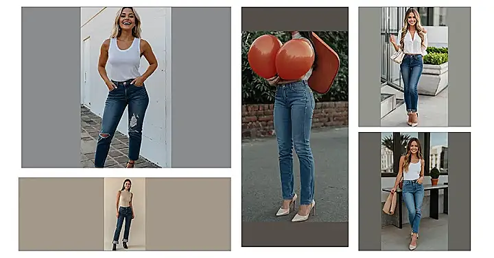 And let’s be real, finding the right pair of jeans is like finding the perfect pizza topping – it can make or break your whole day! Pair them with a basic white tank like in the image or a band tee and sneakers for a casual vibe, or dress them up with heels and a blazer to show everyone you mean business. Either way, rock those jeans with confidence!