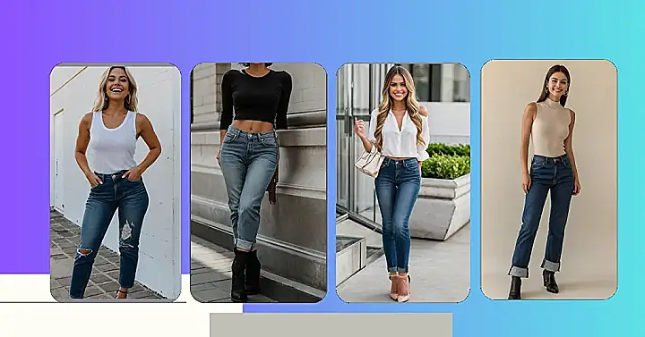 And let’s be real, finding the right pair of jeans is like finding the perfect pizza topping – it can make or break your whole day! Pair them with a basic white tank like in the image or a band tee and sneakers for a casual vibe, or dress them up with heels and a blazer to show everyone you mean business. Either way, rock those jeans with confidence!