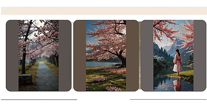 This picture is like stepping into a fairytale! Imagine a world made entirely of fluffy pink cherry blossoms, all slightly blurry like a dream. It’s like those cherry blossom wallpapers you see, but way more magical. The trees are leaning over a calm pond, reflecting the pretty pink flowers in the water, making it look like the whole scene is sprinkled with fairy dust. It’s the perfect background for any daydream, or maybe even a super cool phone wallpaper!
